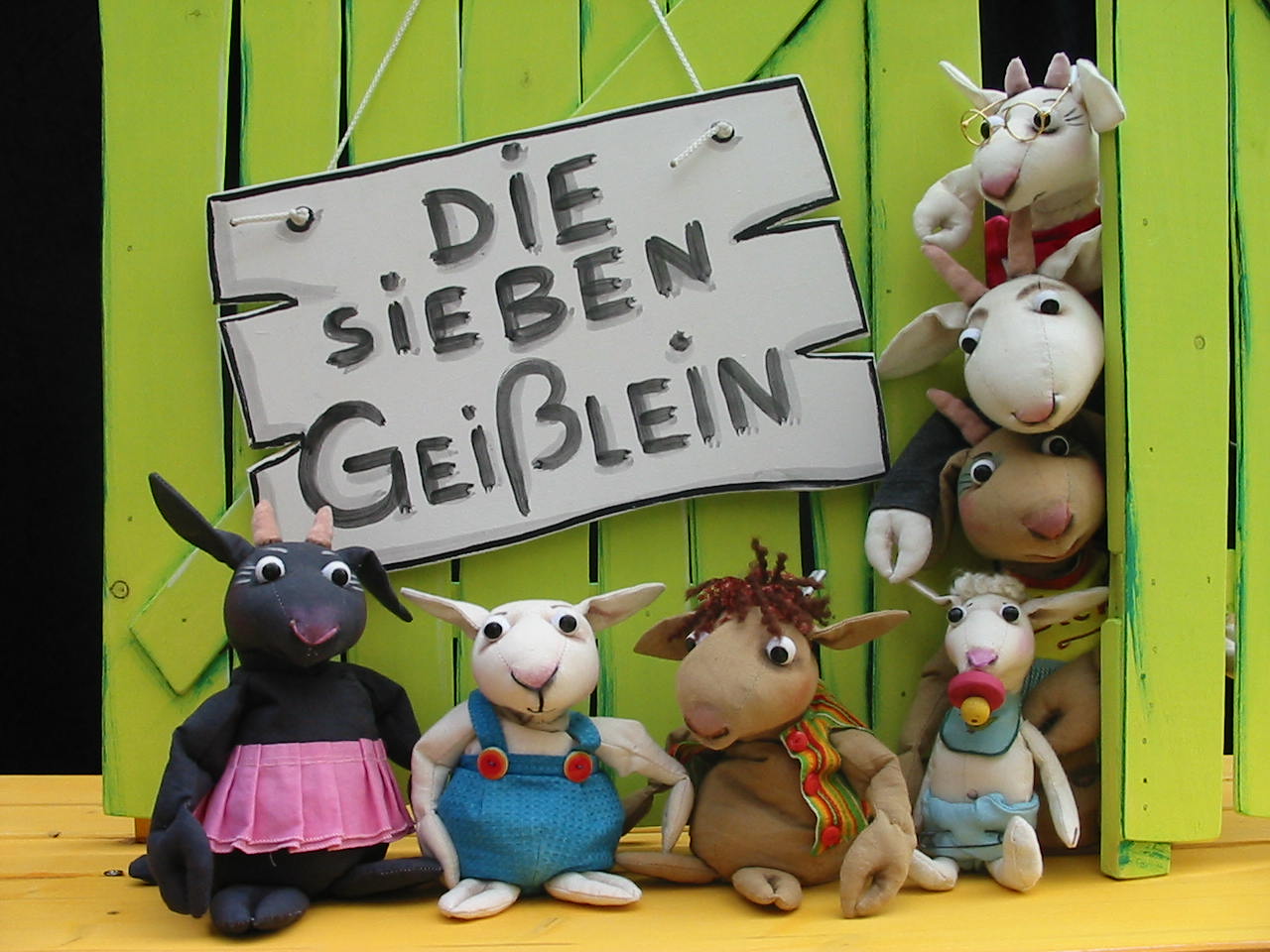 „Seifenblasen Figurentheater“. Meerbusch präsentiert „Sieben Geisslein “ Puppenspiel frei nach Gebrüder Grimm „Hurra, die Mutter geht einkaufen!!! Endlich haben wir das ganze Haus für uns alleine.“ Da beginnt ein Rennen und Toben, ein Streiten und Zanken, ein Singen und Lachen bis es an die Türe klopft…